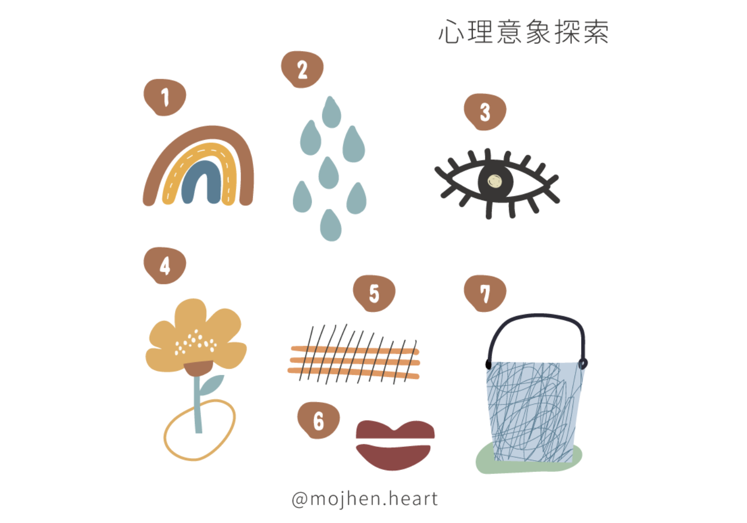 睜開眼睛後,請直覺的選出畫面中的一個圖像,並且感受一下這個圖像給你帶來的感覺。