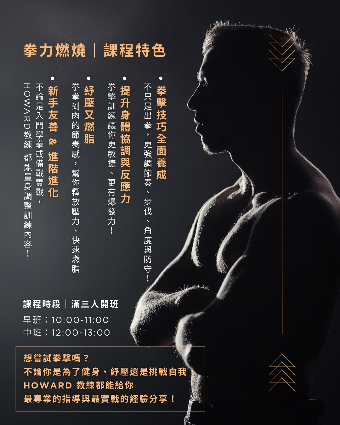 Howard 教練都能給你最專業的指導與最實戰的經驗分享!