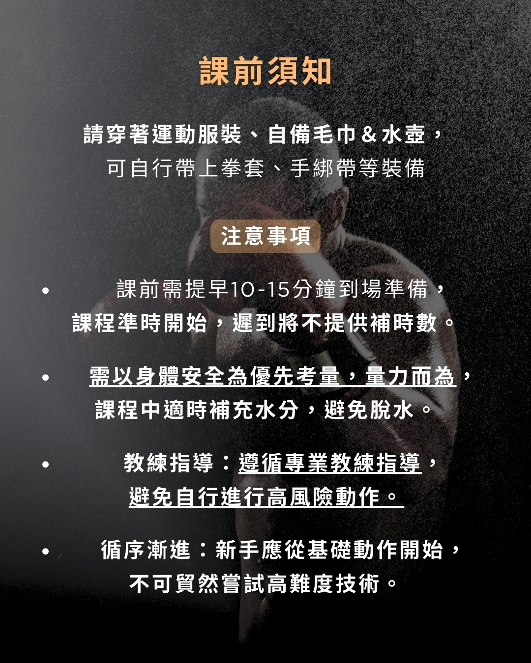 🔥早鳥特別優惠:即日起前十位報名成功者贈送「拳擊手綁帶」一組(價值150元),數量有限、送完為止。