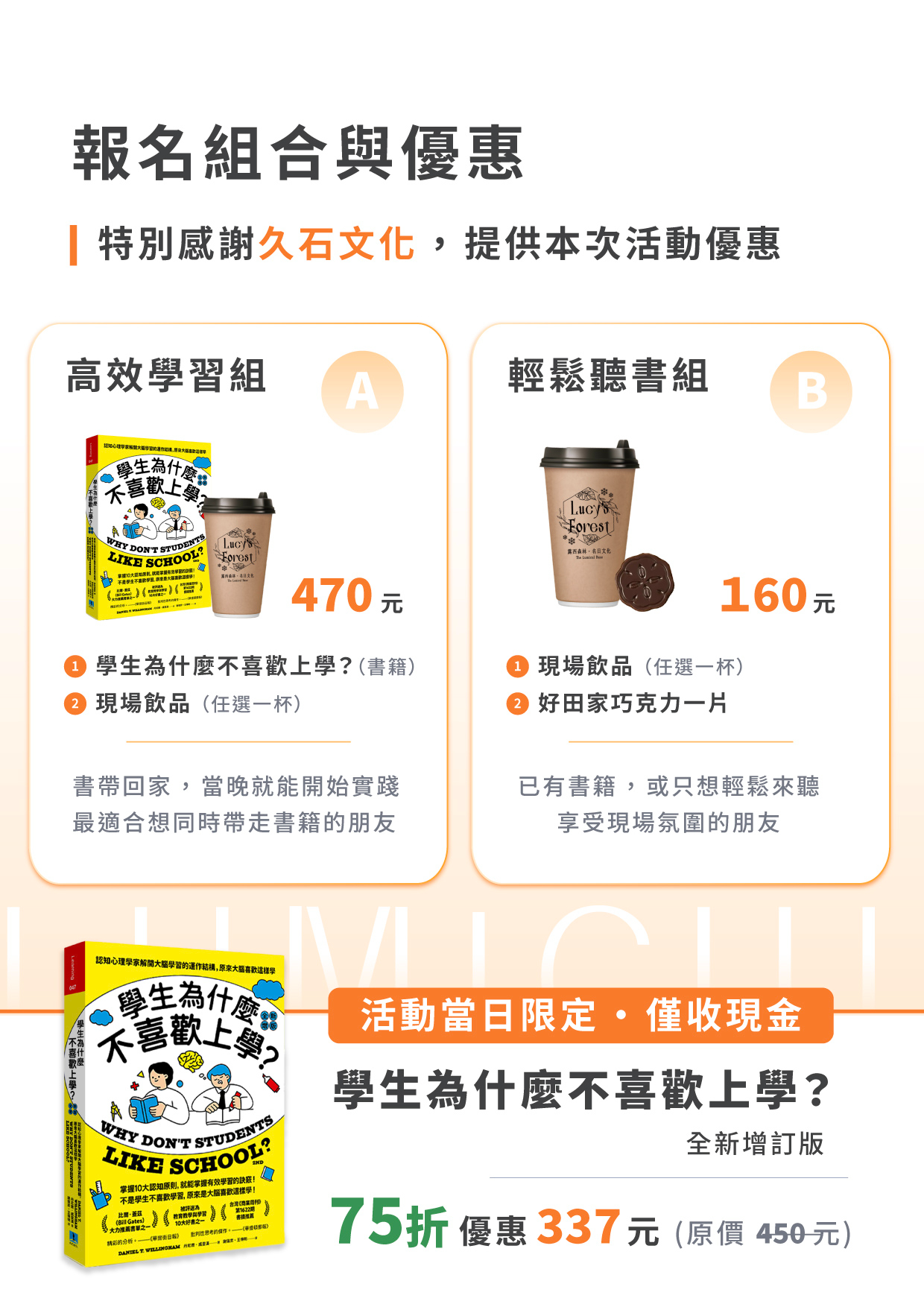 《學生為什麼不喜歡上學?》(75 折)+ 現場飲品一杯(任選)