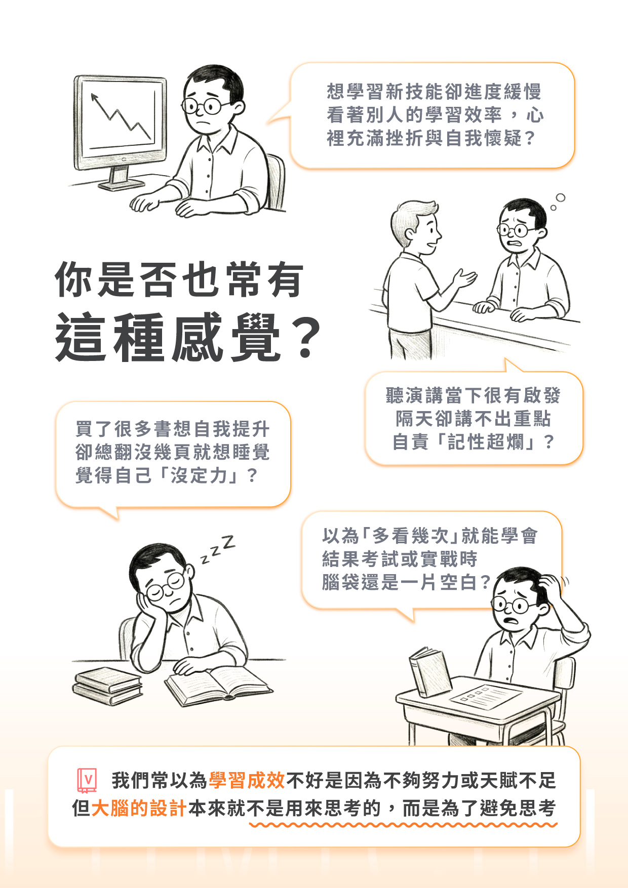 以為只要「多看幾次」就能學會,結果考試或實戰時腦袋還是一片空白?