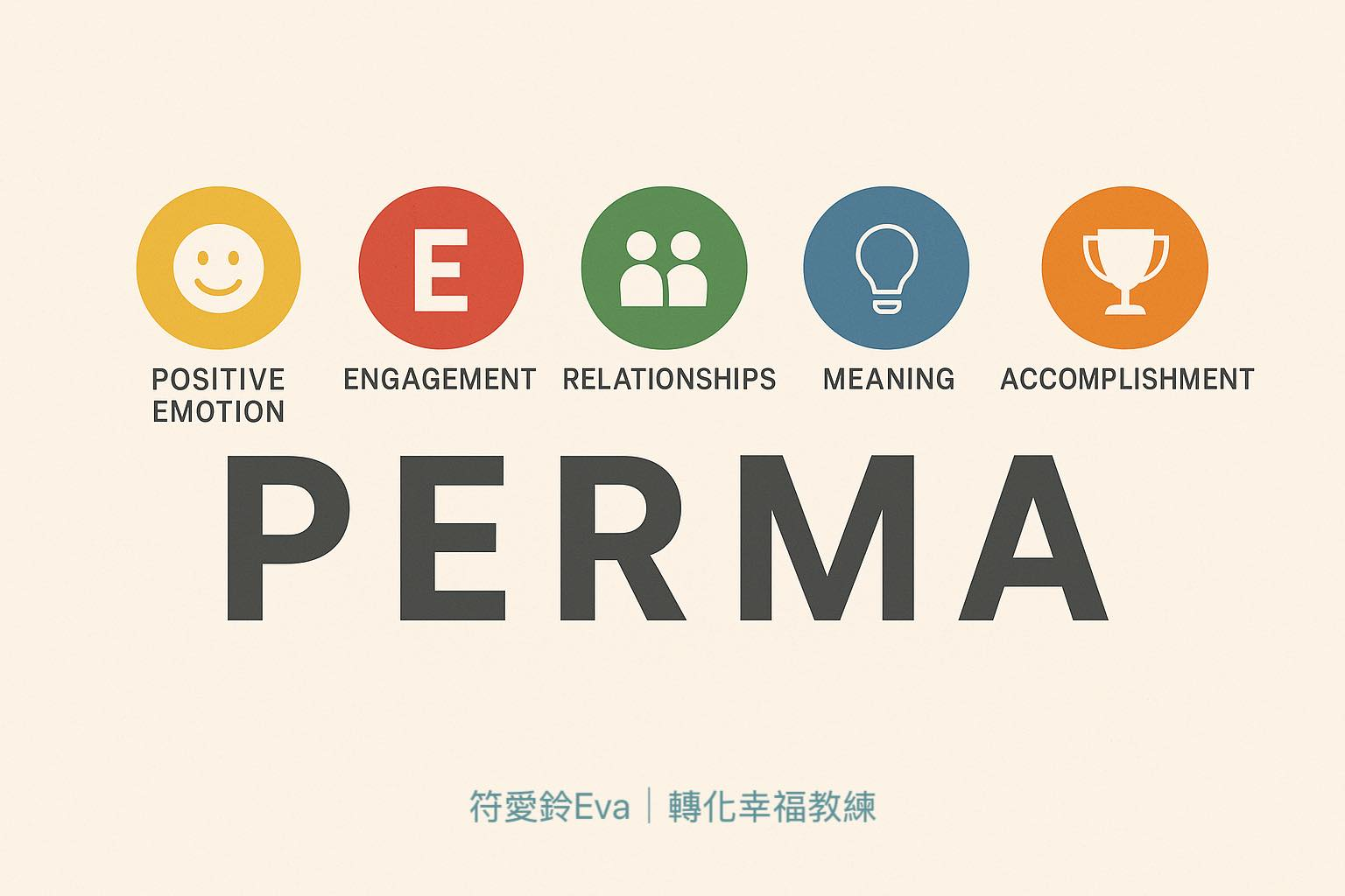 這時候,就要回到我長期教學中強調的主軸之一:幸福學 PERMA 模型。
