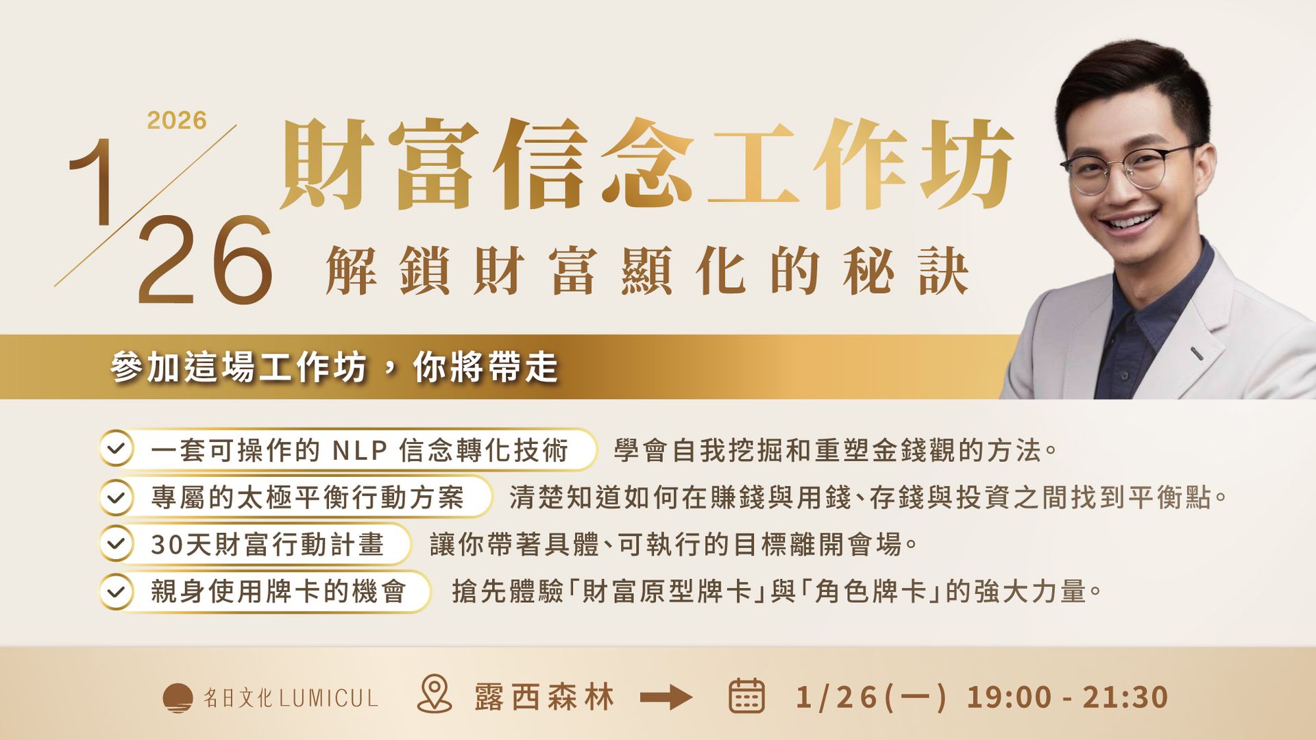 1/26 財富信念工作坊:解鎖財富顯化的秘訣