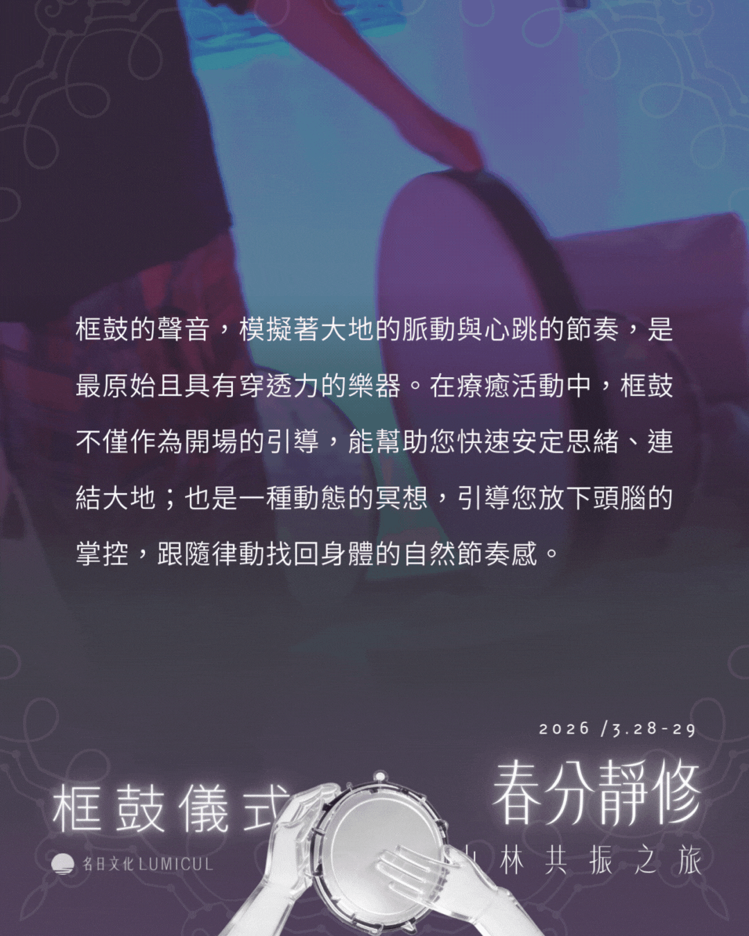 活動介紹: 春分時節,是生命能量最均衡的時刻。 當大地的陽氣回升,萬物從冬日的蟄伏中甦醒,您的身心也需要一場深度的「回春淨化」。 我們邀請您離開都市的喧囂,在坪林山林的靜謐中,透過三位專業療癒師的引導,平衡陰陽、釋放舊有,讓身體與心靈在春日中重新煥發生機。 這不只是一次露營,而是一場專為您設計的兩天一夜身心靈深度旅修。